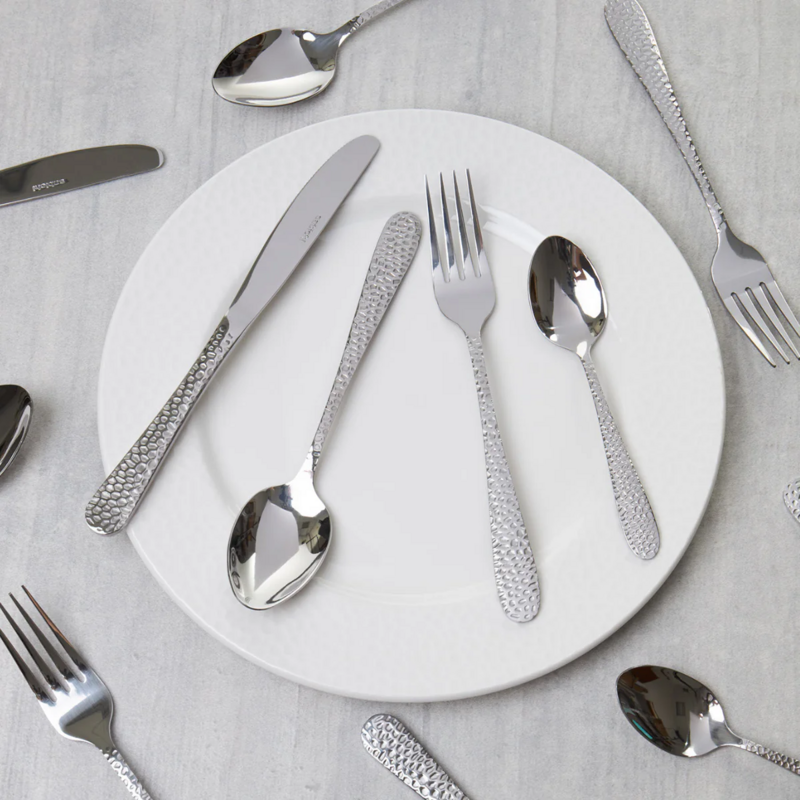 • The Hammered 24-piece cutlery set is a unique modern design perfect for contemporary homes.