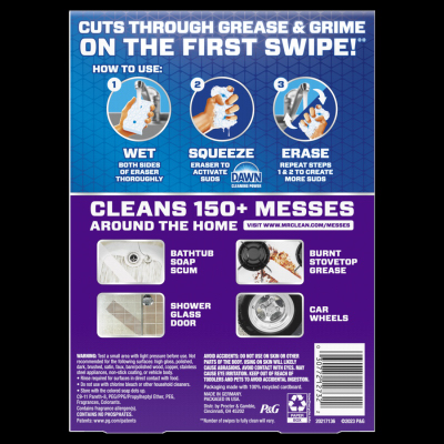 • 2-in-1 eraser with dawn cleaning power cuts through grease and grime on the first swipe.