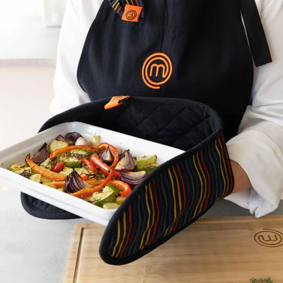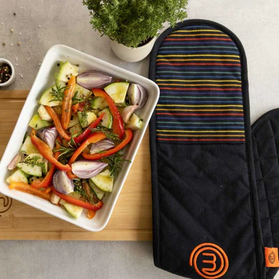 • Protect yourself from high heat with these coloured MasterChef oven mitts.