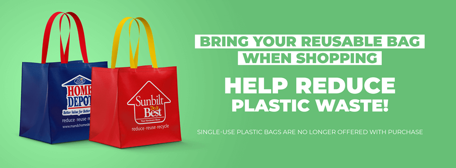 The journey to reduce plastic waste began earlier this year when M&C Drugstore retail locations offered branded reusable bags to their customers as a viable alternative to the traditional plastic shopping bag. To further the initiative, M&C Group of Companies will phase out single-use plastic bags at all M&C Home Depot and Sunbilt locations effective June 30th, 2022.