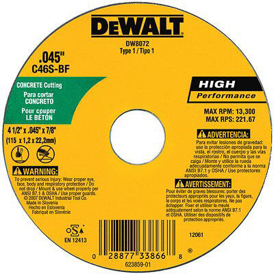 DeWalt Masonry Cutting Wheel 4x0.45x7/8 Inch 1 Each DW8072