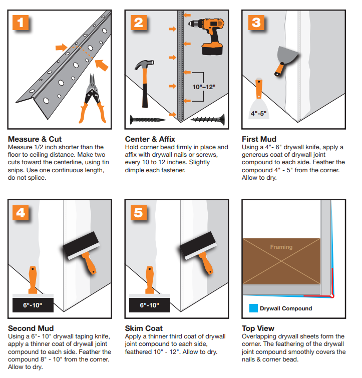 • Galvanized steel corner bead is made from corrosion resistant material that provides solid protection at drywall corners.