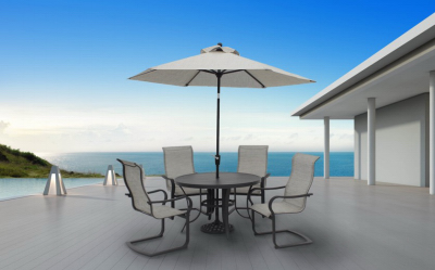 • Matching swivel rocker, 40" sq slatted table, 48" round slatted table, 40"x68" slatted table, bistro Set, 9' market umbrella and base all sold separately.