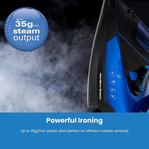 • Glide through a full basket of ironing effortlessly …Experience efficient crease removal like never before with the super powerful steam shot, delivering up to 35g/min of steam. Say goodbye to stubborn wrinkles as this iron effortlessly tackles even the toughest creases.
