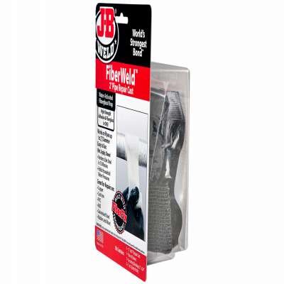 • J-B Weld FiberWeld 2" Repair Cast is a Water-Activated Fiberglass with High-Strength Adhesive and Fiberglass in One. Works on Pipes up to 2 Inches in Diameter. Easy to Use: Wet, Apply, Done! Hardens Like Steel in 15 Minutes. Holds Household Water Pressure. Great for Repairs on Copper, Cast Iron, PVC, ABS, Galvanized Steel, Rubber and More. Built with FiberFix Technology. Made in the USA.